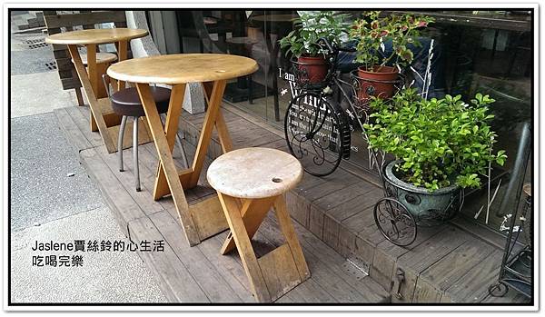 在門外有可愛的小座位,我好愛這樣的原木擺飾,原木色的裝飾我都愛,因為很自然又簡單