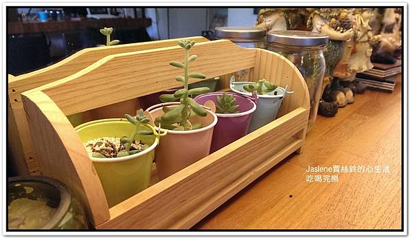 每次進到咖啡廳,吸引我的都是原木裝飾,這四個可愛的小盆栽也很吸晴,只要是迷你小物,女生都很愛