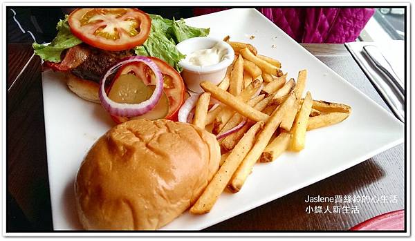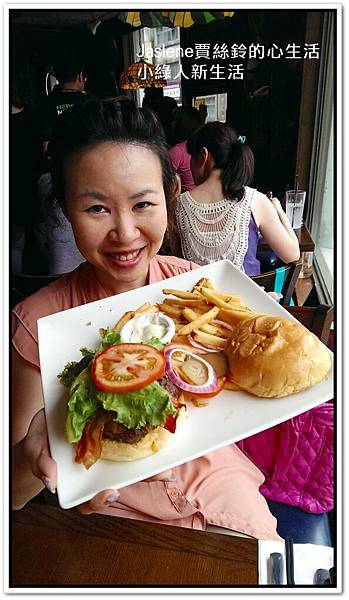 這份量十足的漢堡餐,盤子都比我們的臉還要大耶!