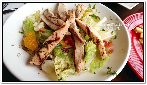 清新香橘烤雞肉沙拉,淋在上面的油醋醬好好吃耶!