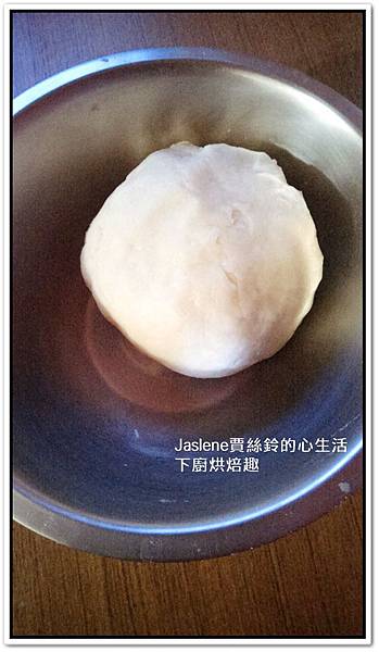 2. 把麵糰搓揉至表面光滑狀態,稍微桿平後包上保鮮膜,放入冰箱約1小時讓麵糰變硬(我直接把麵糰放到冷凍大約20分鐘)