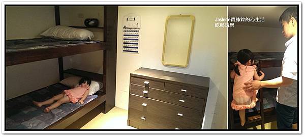 小遊艇裡面的設備應有盡有,還有真的床跟枕頭、櫃子,還有鏡子耶,