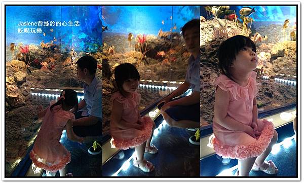 水產廳裡有超大型的玻璃櫃,裡面都是不會動的假魚,小蜜桃好像沒興趣,