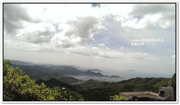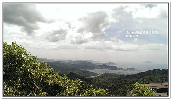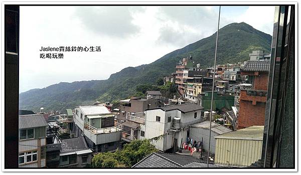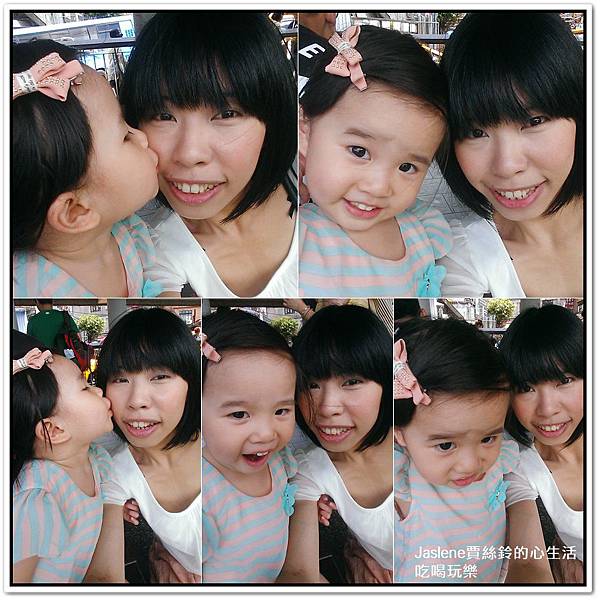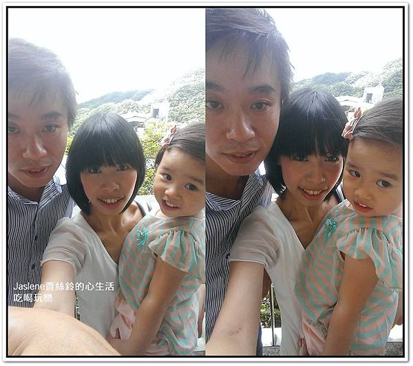 老公說先把機車騎去停好,要我跟小蜜桃在九份老街旁邊的涼亭等他