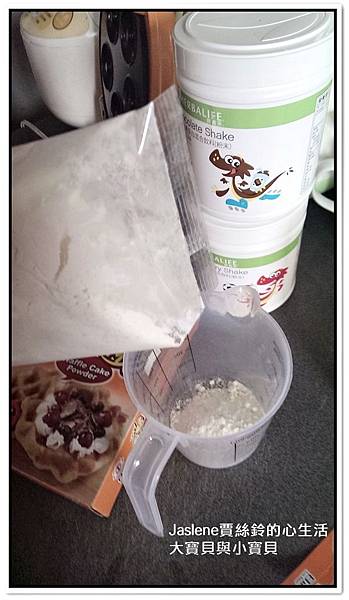 本來我要自己調麵粉(中筋+泡打粉+粉糖),可是懶惰,買鬆餅粉比較快啦!