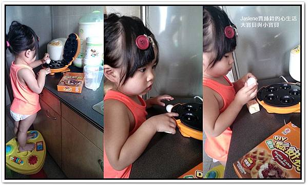 所以昨天讓她睡晚一點,等她起床再烤鬆餅給她吃。