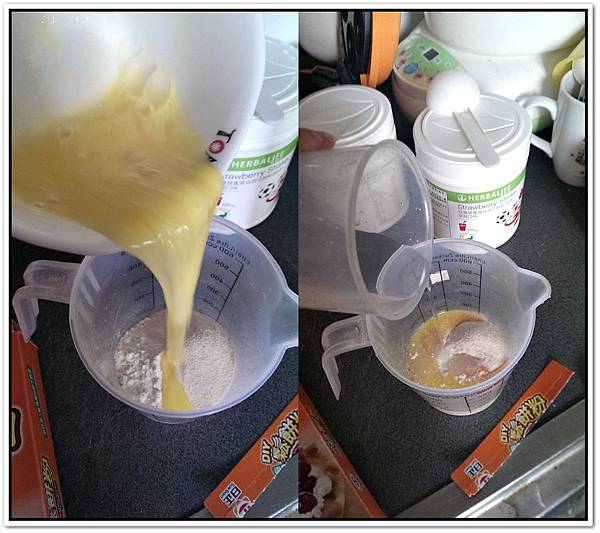 把雞蛋喇喇a加在調好的粉類,我怕太稠,有加點水(可以不用加)