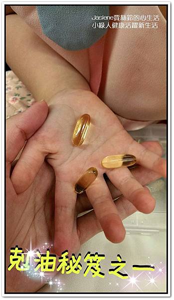 她把魚油吞進去,再把外面的膠囊吐出來,我的女兒還滿聰明的,哈哈哈~