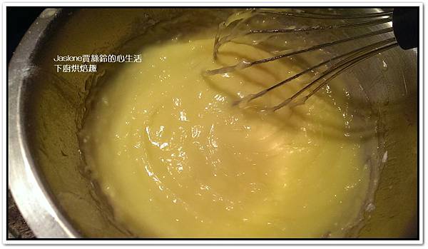 2. 在過程中要不停、不停的攪拌,大概2~3分鐘(用打蛋器劃過有明顯紋路的濃稠度就好)