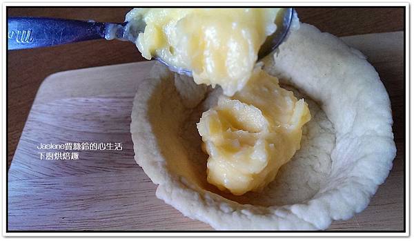 5. 待烤好的塔皮放涼以後,填入冰涼的檸檬餡