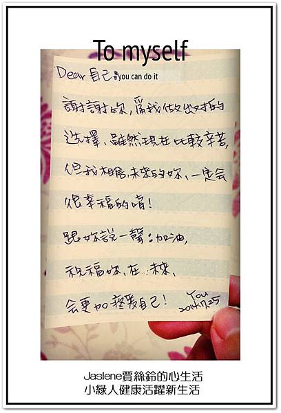 謝謝自己,拋開以前的我,勇敢的為我做了對的決定。