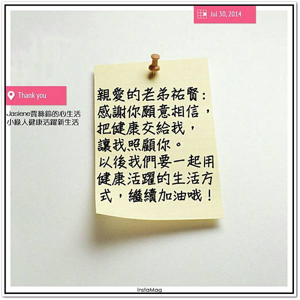 弟弟,感謝你,讓姐姐照顧你的健康。
