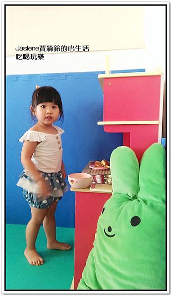 小蜜桃眼睛很利,進餐廳就看到遊戲區,然後對我說:「媽媽我要進去玩玩具」