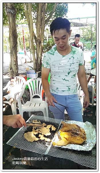 烤雞很大隻,可是後來大家顧著玩遊戲,結果…烤焦了