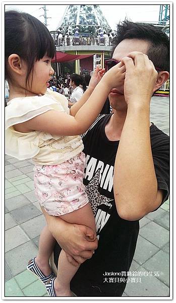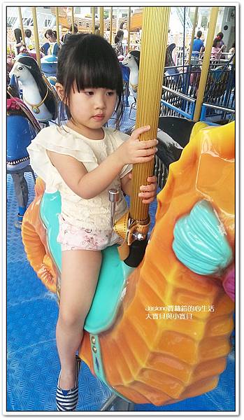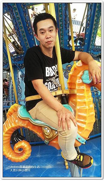 雖然那天我很想玩雲霄飛車、海盜船,但為了小蜜桃,排隊等玩旋轉木馬,