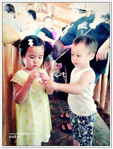 帶小朋友去看動物,排隊大概20幾分鐘,兩個孩子邊排隊、邊聊天、邊搶汽球