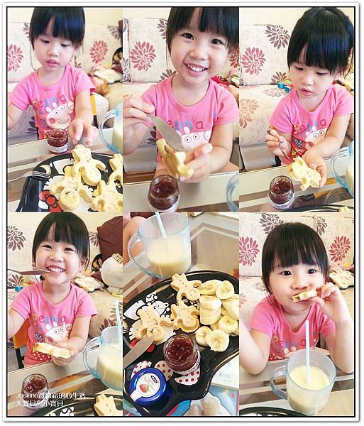 某天早上她自己跑到廚房拿盤子、準備果醬,跟我說:「媽媽我要吃早餐了」