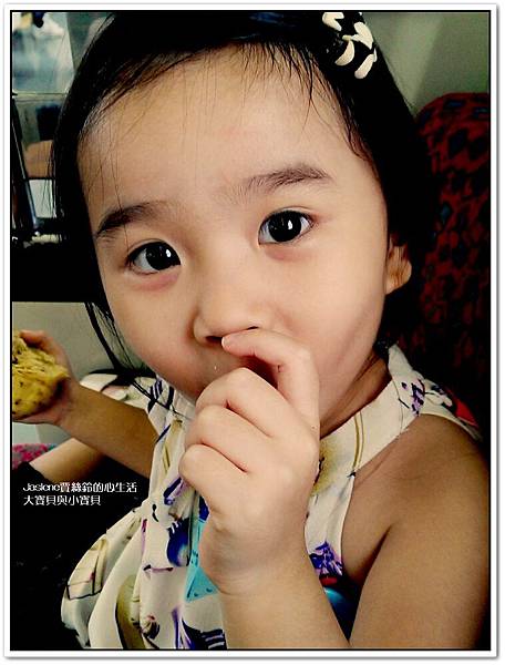 然後拿著盤子,咚咚咚的跑到客廳,樣子真的好可愛