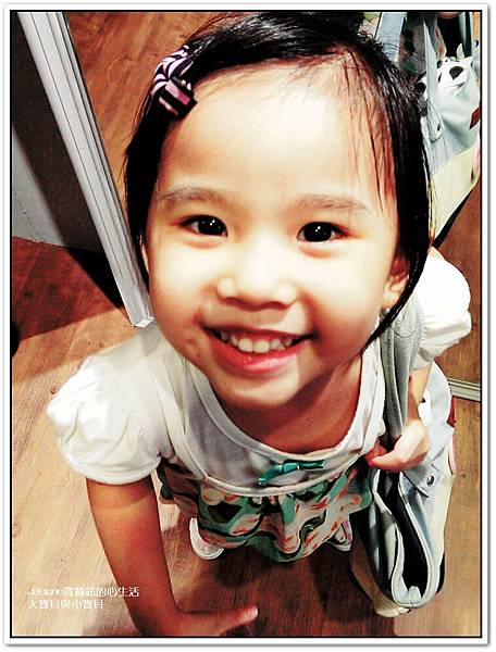 我說:「學校有很多好玩的玩具,還有球池、大車車、老師會給妳點心哦!」
