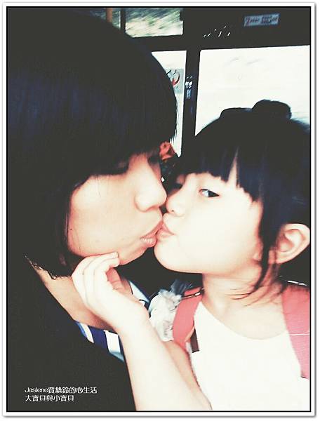 抱著睡著的小蜜桃等車、坐公車、走路、左手撐傘、右手抱小孩,
