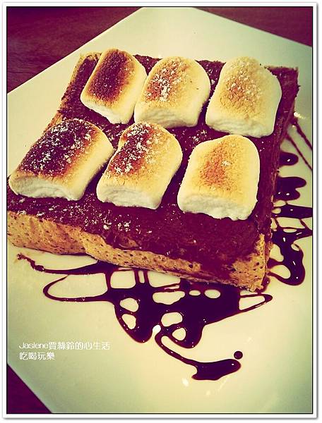 吐司抹上巧克力醬,再放上棉花糖去烤,